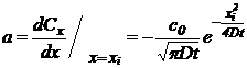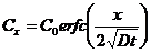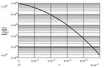 дифузанту на поверхні зразка (C0=1020см-3), отриманий розподіл густини домішки
