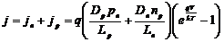 мкм), площа ЕДП (S = 9*10-12см2), пряма гілка ВАХ діода
