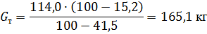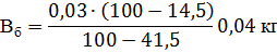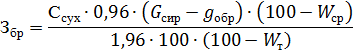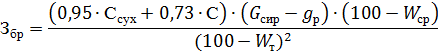 борошна і сировини по рецептурі, кг;б, Wсир - вологість борошна, і сировини, %