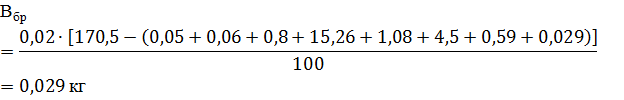 Вхл=Gт-( Вб+Вт+Збр+Зобр+Зуп+Зус+Зукл
