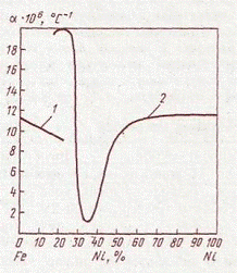 Fe-Ni. При больших содержаниях никеля в сплавах образуется непрерывный ряд