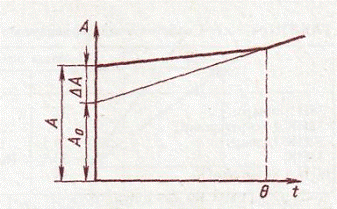инварного сплава при нагреве, описываемое формулой Аt = А20(1 +αt), показано в