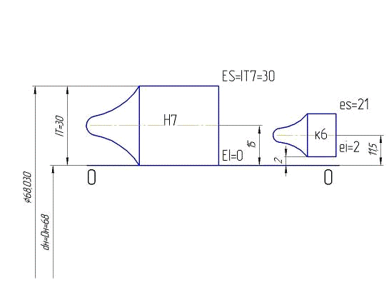 и 27,43% с натягом. Изобразим поля допусков ПП 68Н7/к6 на рисунке 2.