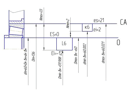 Исходные данные: D=d=33 мм, класс точности - средний.