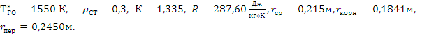Исходные данные для расчета турбины высокого давления