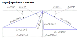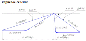 горловины в расчетных сечениях рабочей решетки: