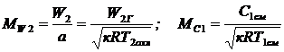число Маха в расчетных сечениях: