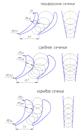 Рис. 7. Сечение рабочей лопатки с проверкой плавности каналов