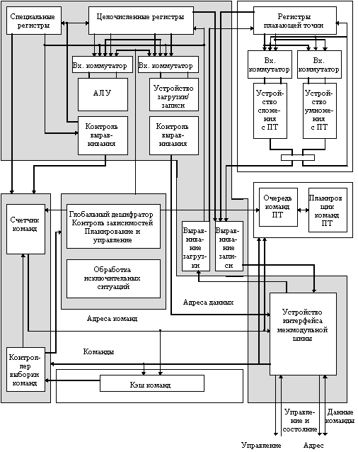 большинство команд за один такт. Устройство плавающей точки имеет конвейерную