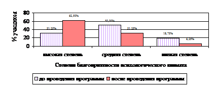 - показатель психологического климата высокий, оценка 3 балла.