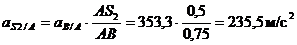 масштабе Ka, отложив его на плане ускорений на прямой a/b/ и соединив точку o/ и s2/, определяем ускорение as2: