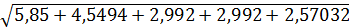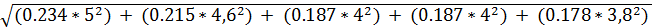 + (0.215/4.6) + (0.187/4) + (0.187/4) + 0.178/3.8)) =