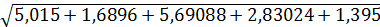 1,4357 * 1,2116 * 1,4732 * 1,2991 * 1,1856 = 3,9470