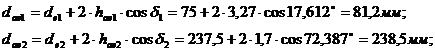 образующие конусов вершин и впадин зубьев. По направлению к точке О откладываем