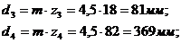 вертикальных линий - оси промежуточного и ведомого валов.