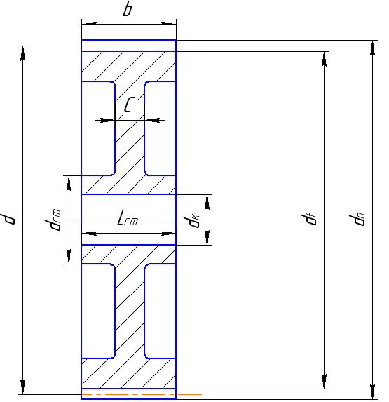 оформляем по найденным геометрическим размерам коническую шестерню и коническое