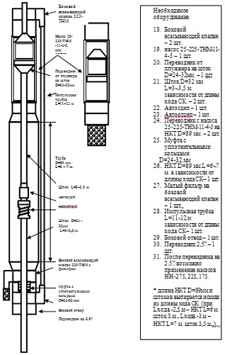 спуск на НКТ D=2,5"и на колонне штанг D=7/8", при этом