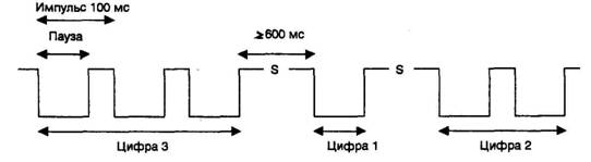 длительность импульса равна 100 мс. Интервал между набором соседних цифр должен