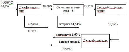 разделением на широкую масляную фракцию и гудрон. Но при данном варианте