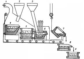 давлением вводят во вращающуюся смесительную машину, в которую заранее