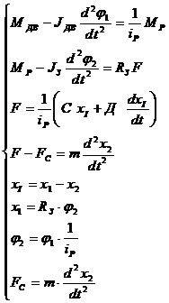 модель механической системы перемещения робота как объекта управления. Входным