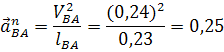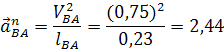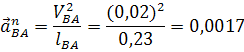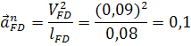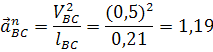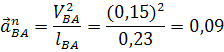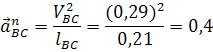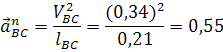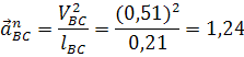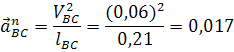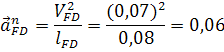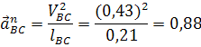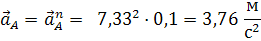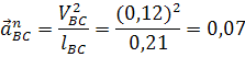 вектора нормального и касательного ускорений точки D относительно центра переноса C.