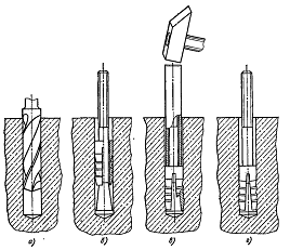 втулками или разрезными цангами устанавливают в скважинах с помощью монтажных