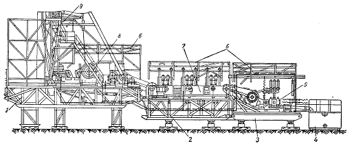 укрытия; 7 - силовые агрегаты; 8 - лебедка; 9 - вышка
