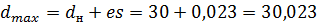 Предельные отклонения вала es= +23 мкм; ei= +2