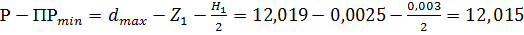 По таблице допусков [15, с. 43-44; 19, с. 7]