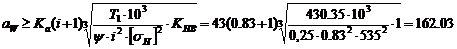 коэффициент, равный 43, для косозубых передач и 49,5 для прямозубых; -