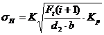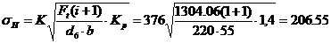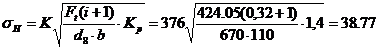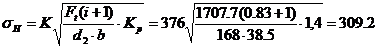 прочности зацепления по контактным напряжениям выполняется: