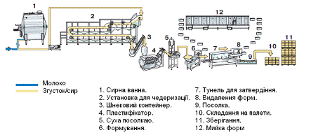 молока, з подальшою обробкою і дозріванням виділеної сирної маси.[19]