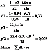 Мгл.н=Σ106,1∙0,84+18∙0,05+16∙0,664+30∙0,023+44∙0,012+58∙0,008=92,7