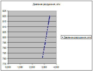 давления, при котором происходит разрыв, в ходе испытания от массы самого