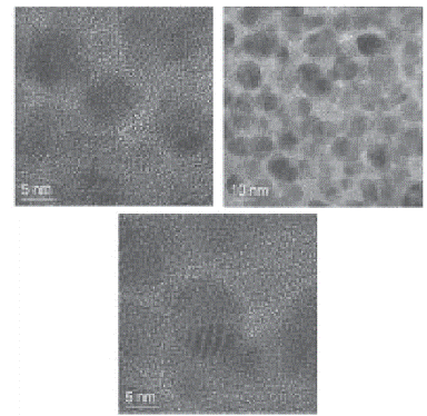 наночастиц в олеиновой оболочке, средний размер частиц составляет 4 - 6 нм.