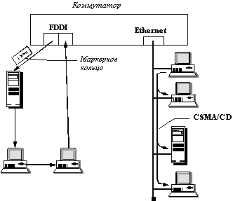 (Ethernet, Token Ring), основанных на разделяемых средах передачи данных