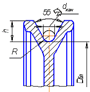 Глубина ручья=(2…2,5)dкан=(2…2,5)*5,1=10.2…12,75мм, принимаем h=11,5 мм.