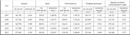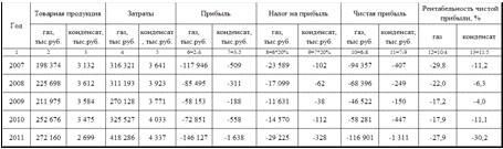 экономических показателей разработки зоны УКПГ-8 за 2007-2011 годы
