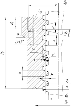 .2 Определение диаметра бурта гайки DБ(проектный расчет)