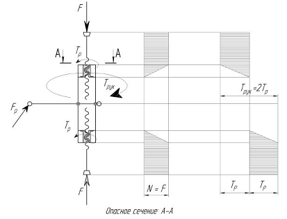 Рис. 2. Схема нагружения винтовой пары- наружный (номинальный)