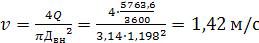 где Q - производительность станции, Q = 5763 м3/ч;- скорость
