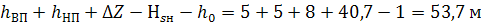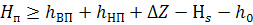 потери напора во всасывающей и нагнетательной линиях подпорной станции hВП