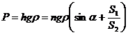 столбом h рабочей жидкости, определяемым как сумма столбов ht и h2 в обоих
