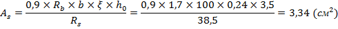 арматуры, определенный расчетом, 18 мм, суммарная площадь в сечении элемента