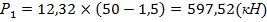 наличии внутренних колонн вертикальная нагрузка с соответствующей грузовой
