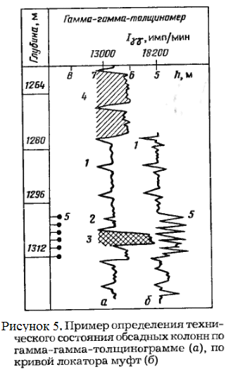 местоположения муфтовых соединений колонны, участков перфорации, толщины и