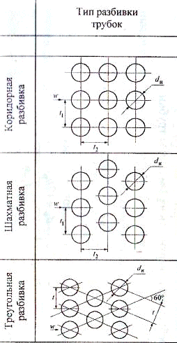 Рассматривают 3 типа разбивки трубок: коридорная, шахматная и