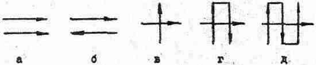 а - прямоток, б - противоток; в - одноходовой перекрестный ток; г -