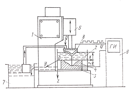 электродом-инструментом и обрабатываемой деталью, помещенных в жидкую рабочую